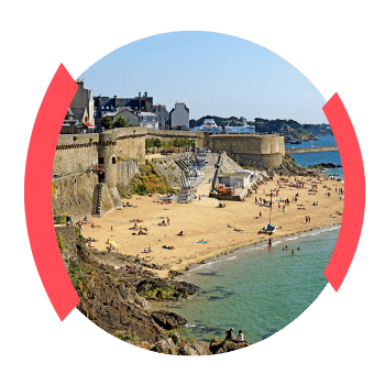 - Entre la grande plage (Le Sillon) et les remparts (Porte Saint-Vincent).
